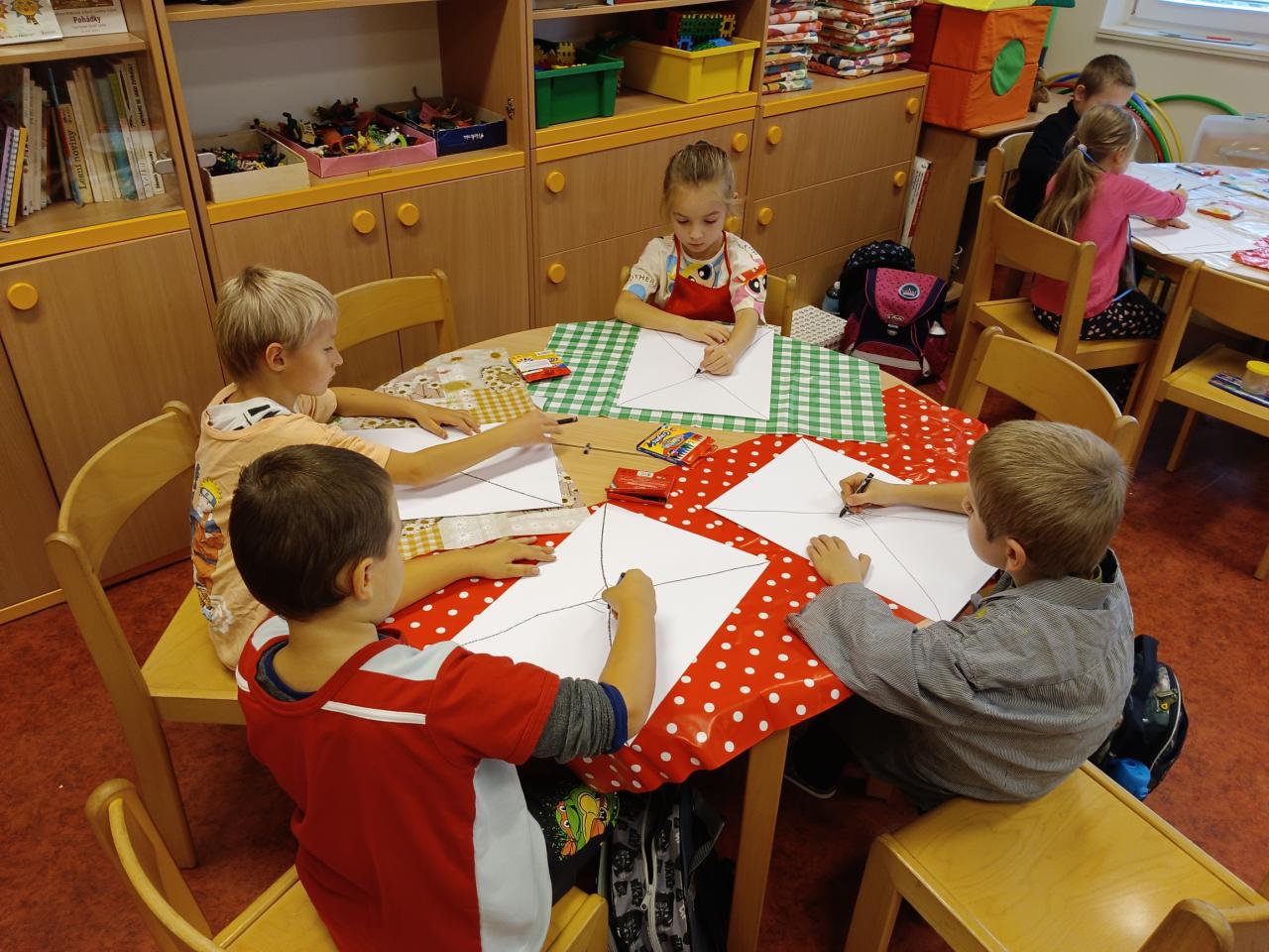 Konec října přinesl naší třídě zajímavé zpestření. Naše učebna prochází rekonstrukcí, a tak jsme se na týden uchýlili do školní družiny. Pro většinu z nás je to známé prostředí, kde trávíme rána i odpoledne. Někteří z nás ale zavítali do družiny úplně poprvé. Učíme se netradičně u kulatých stolečků, kde sedíme ve skupinkách spolu s několika kamarády. I když jsme tuto změnu zvládli bezvadně, už se těšíme na naši ještě o kus hezčí učebnu. Paním vychovatelkám děkujeme za pomoc a zapůjčení prostor.