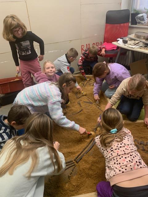 V úterý 7. 1. 2025 jsme se vypravili do pražského Triloparku. Byla to odměna za výhru ve výtvarné soutěži. Už samotná jízda vlakem a metrem byla pro některé z dětí velkým zážitkem. To nejlepší nás čekalo ale až v Triloparku. V první části programu se děti nejprve seznámily s vědním oborem paleontologie, prohlédly si ukázky trilobitů, seznámily se s prací paleontologů. Následovala praktická část, kdy si všichni vyrobili své odlitky, společně našli kostru pravěkého ještěra a nakonec se pomocí „laserového vrtáčku“ (omlouvám se za laické označení) pokoušeli v horninách najít zkameněliny. Děti byly programem celé exkurze nadšené. Druhá část naší odměny bude čtvrteční kino v pečeckém KS.