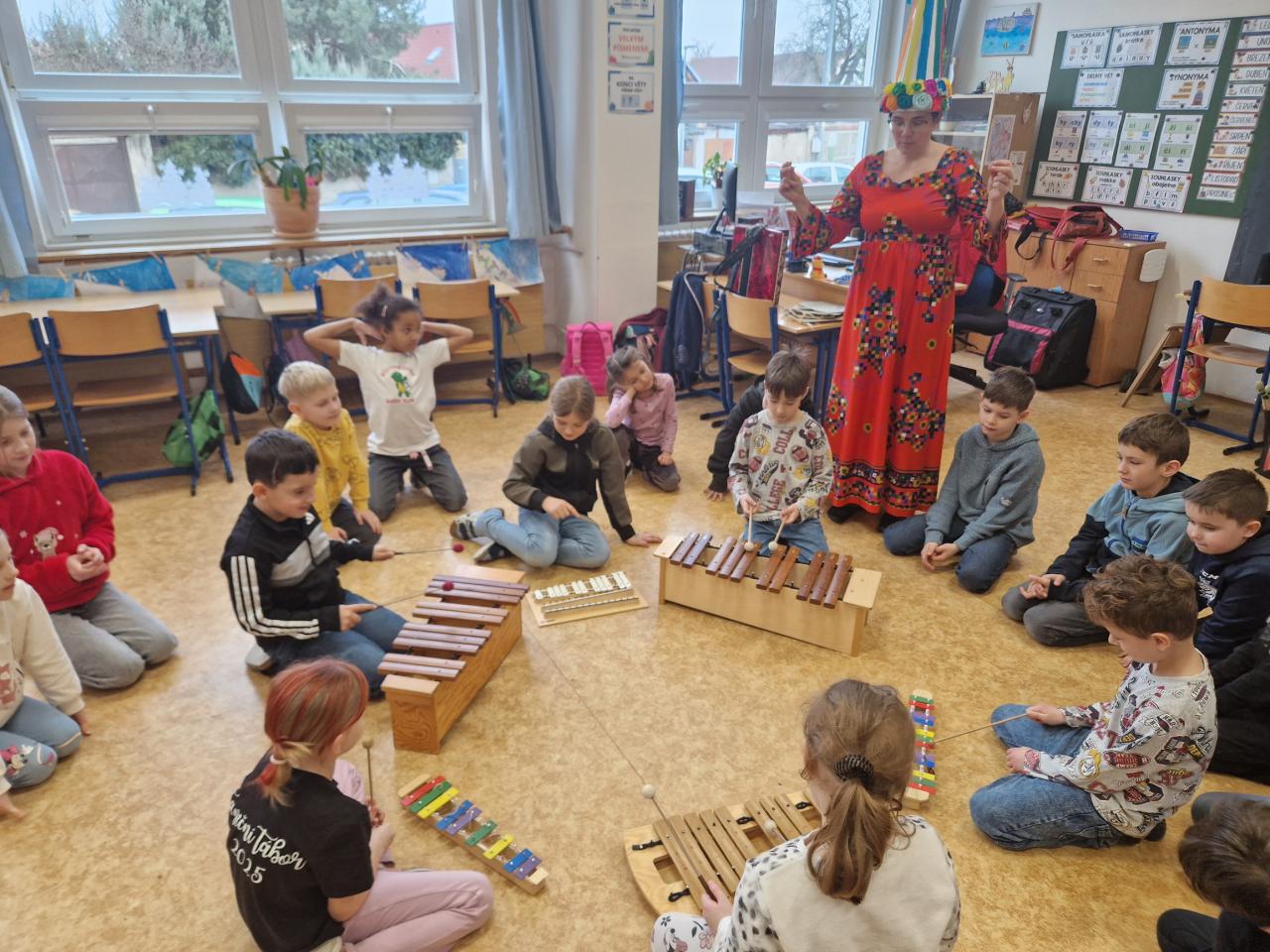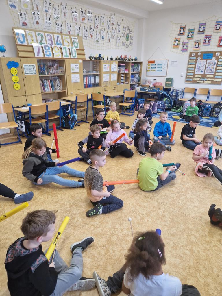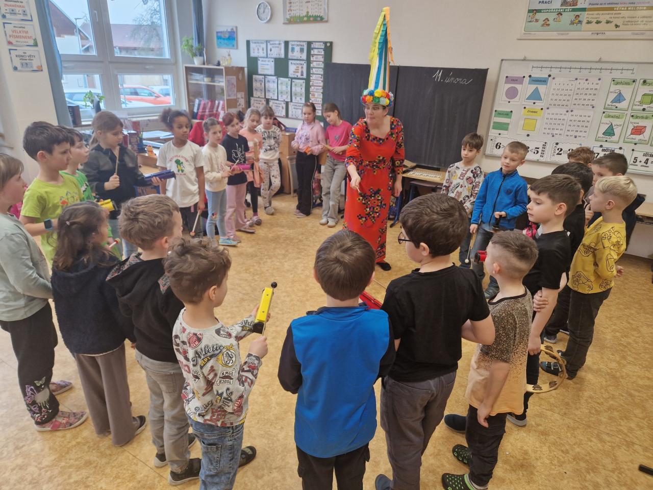 Dne 12. 2. proběhl v naší třídě hudebně pohybový workshop pod vedením paní lektorky Michaely Brčákové. Tématem setkání byl Masopust a tradiční masopustní zvyky, se kterými se děti seznámily hravou a zábavnou formou. Společně si povídaly o masopustních tradicích a maskách a dozvěděly se, jak se toto období slavilo dříve. Děti si s chutí zatančily a vyzkoušely si hru na různé hudební nástroje, například na zvonkohru, činely, xylofon či boomwhackery. Velkou radost měly z toho, že se mohly aktivně zapojit nejen do hudebního doprovodu, ale také do vymýšlení a doplňování písní i pohybů k nim. Kreativitě se meze nekladly a nápady dětí byly opravdu originální. Akce se velmi vydařila a paní lektorce Michaele Brčákové děkujeme za krásně připravený program.