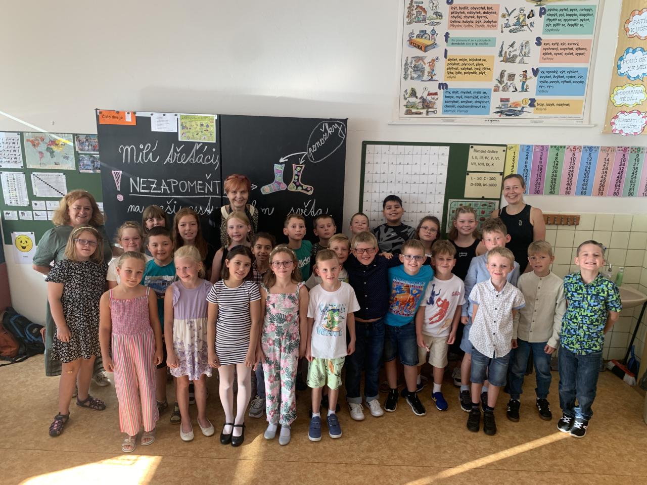 Kromě prvňáků, kteří měli zcela vyjímečné přivítání do školy, jsme i my ve III.C měli vzácnou návštěvu. Děti přišla pozdravit novinářka Petra Procházková. Protože bylo velmi málo času, odpověděla jen dětem na jejich otázky a na závěr se s námi vyfotila. Snad někdy v budoucnu bude i čas a prostor na nějakou besedu.