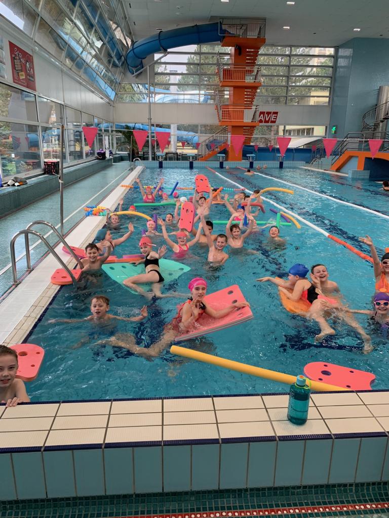 Máme za sebou polovinu z 20 lekcí povinné plavecké výuky. A už po té polovině jsou u všech dětí vidět pokroky. Odbourávají strach z vody, trénují splývání a zdokonalují plavecké styly. Všichni si zaslouží obrovskou pochvalu.