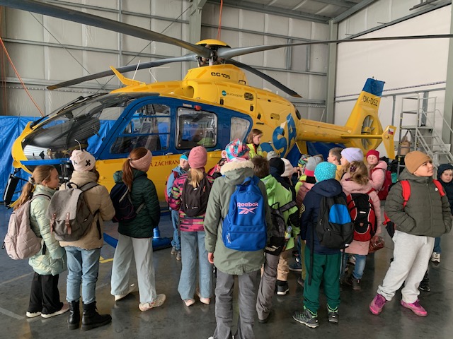 Na dnešek jen tak rychle nezapomeneme. Byli jsme na exkurzi na letecké záchranné službě. Viděli a slyšeli jsme mnoho zajímavého. Dnes už víme jak se označují ranění při hromadných nehodách, na jaké telefonní číslo zavolat v případě nouze, proč je důležité nebát se poskytnout první pomoc nebo například, že je velmi užitečné mít v telefonu staženou aplikaci záchranka. Nejvíc se nám líbila technika. Takže jsme důkladně prozkoumali dvě sanitky a jeden vrtulník. Věděli jste, že všechny záchranářské vrtulníky na světě mají označení Kryštof? To proto, že svatý Kryštof je patronem záchranářů. :-) Ostatně hangár s vrtulníky byl asi tím největším zážitkem pro všechny.