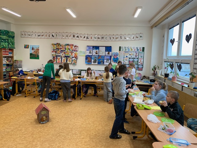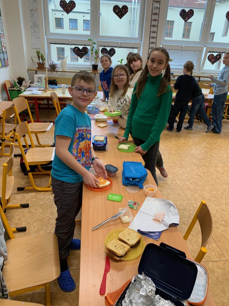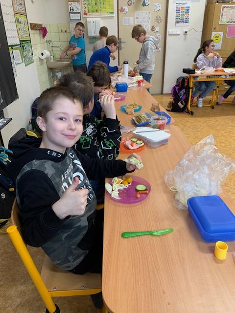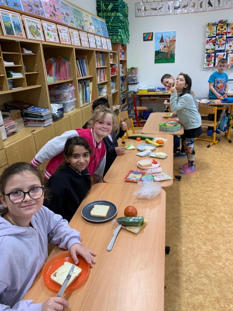Na tento projekt navazovala praktická část, kdy žáci na základě znalostí z ČSV vyráběli zdravé svačinky. Na tu pak pozvali i pana ředitele (když on o tu svou přišel). Při společné svačině pak všichni debatovali o důležitosti zdravé a pravidelné stravy.