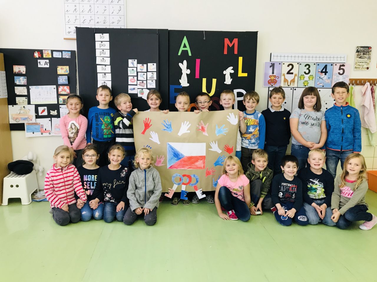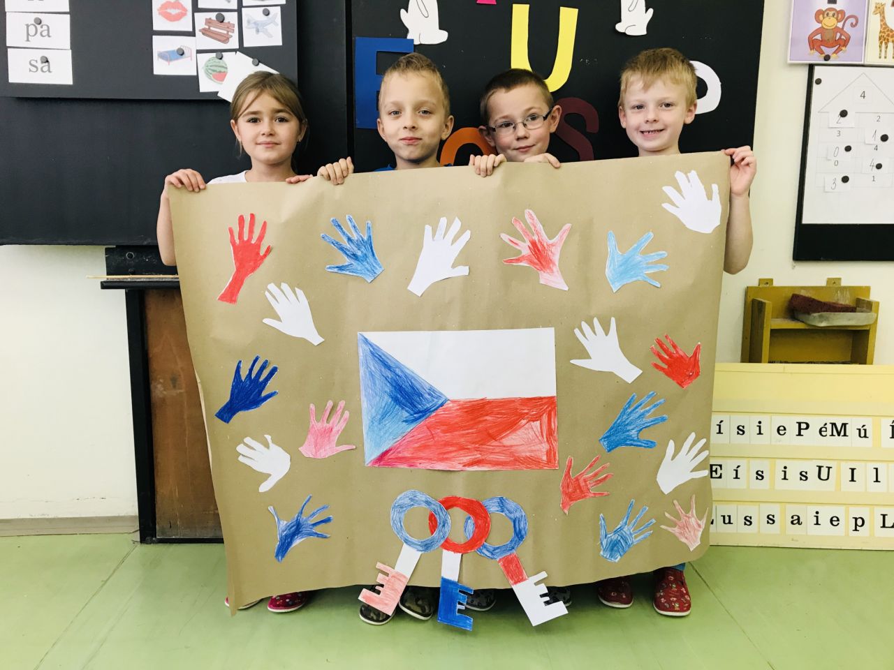 Nejprve se nám paní učitelka pokusila přiblížit, co se stalo 17.11.1989. Potom jsme se společnými silami vrhli do práce a výsledek našeho snažení si můžete prohlédnout na přiložené fotografii.