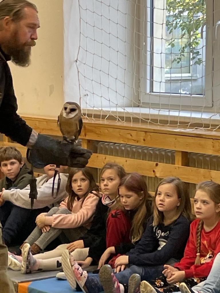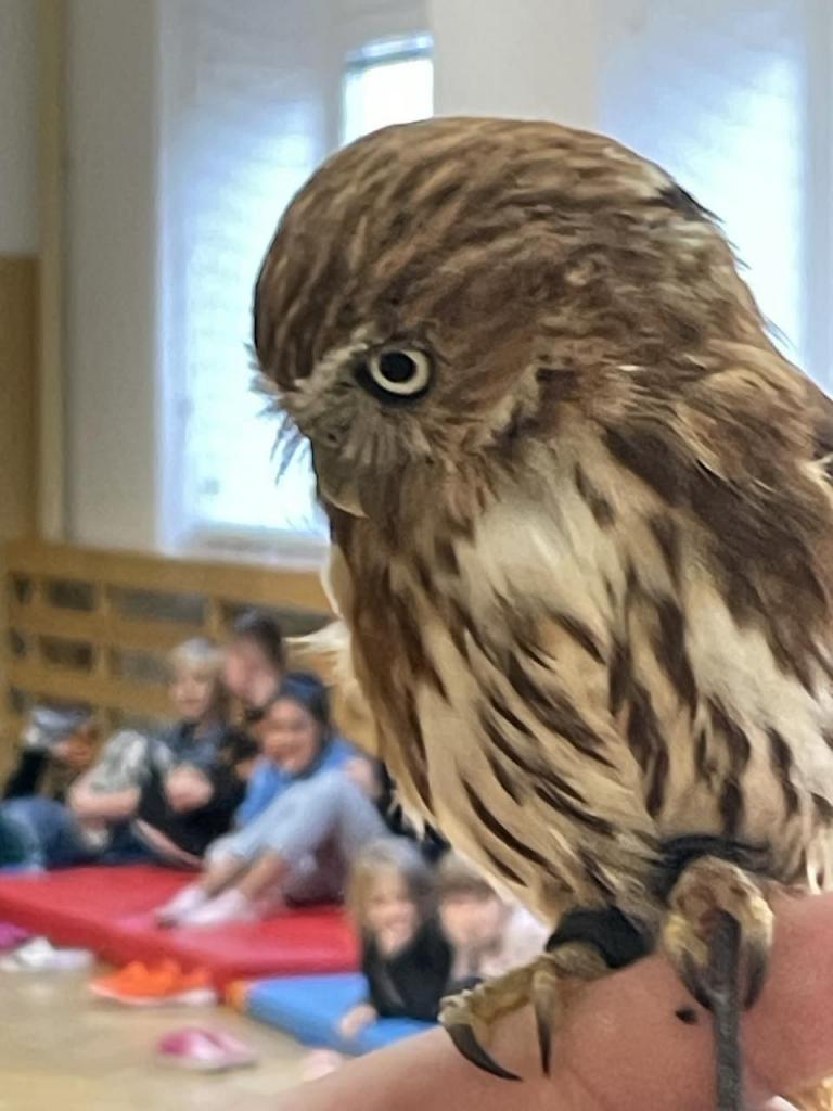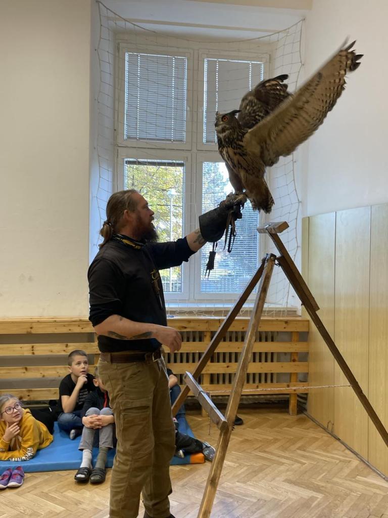 Velmi krásné povídání o sovičkách, ať už o těch nejmenších, jako je Kulíšek, nebo o Výru – jednoznačně největší sově. Děti se dozvěděly, kdo ovládá přírodu v noci, zdali je pravda, že sovy ve dne spí. Už také víme, jestli je opravdu možné slyšet v lese houkat sýčka, nebo jestli jsou sovy moudré. Sokolník pan Michal Procházka tyto i další otázky objasnil a předvedl nám několik druhů sov.