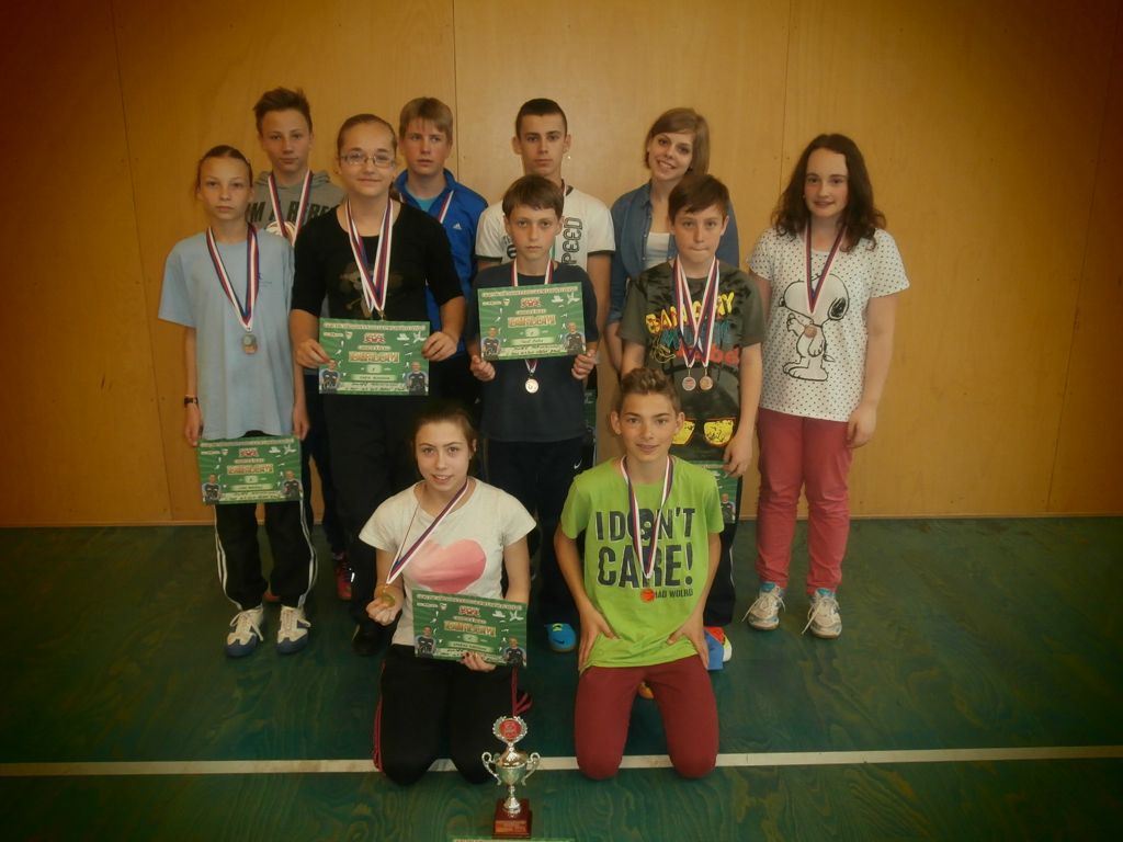 Závodilo se v šestiboji, který se skládal z disciplín: 60m, trojskok, švihadlo, kliky, driblink a hod medicinbalem. V součtu všech bodů nám výkony z jednotlivých disciplín stačily na bronzovou příčku. V hodnocení jednotlivců jsme měli další úspěchy. Nejlepšího výsledku dosáhla Kateřina Horáčková z VIII. B, které se podařilo vybojovat zlatou medaili. Linda Radoňská, Lukáš Mužík a Honza Vilím si za své výkony odvezli stříbrné medaile a Karin Asmanová s Tomášem Švárou bronzové medaile.