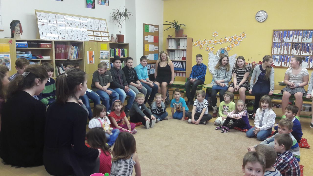 zpívání v tělocvičněnávštěva v 1.Aučíme se možná přijde i JežíšekAničko, zazpíváme si.....
