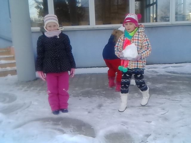 Děti si hrály na školní zahradě....tvořily si ze sněhu....