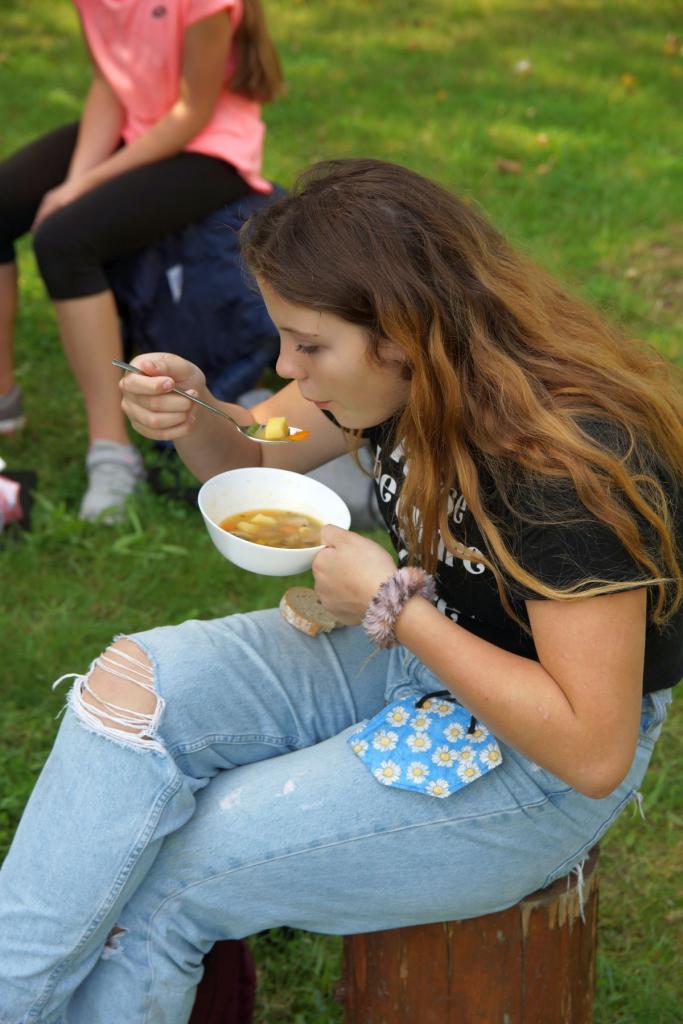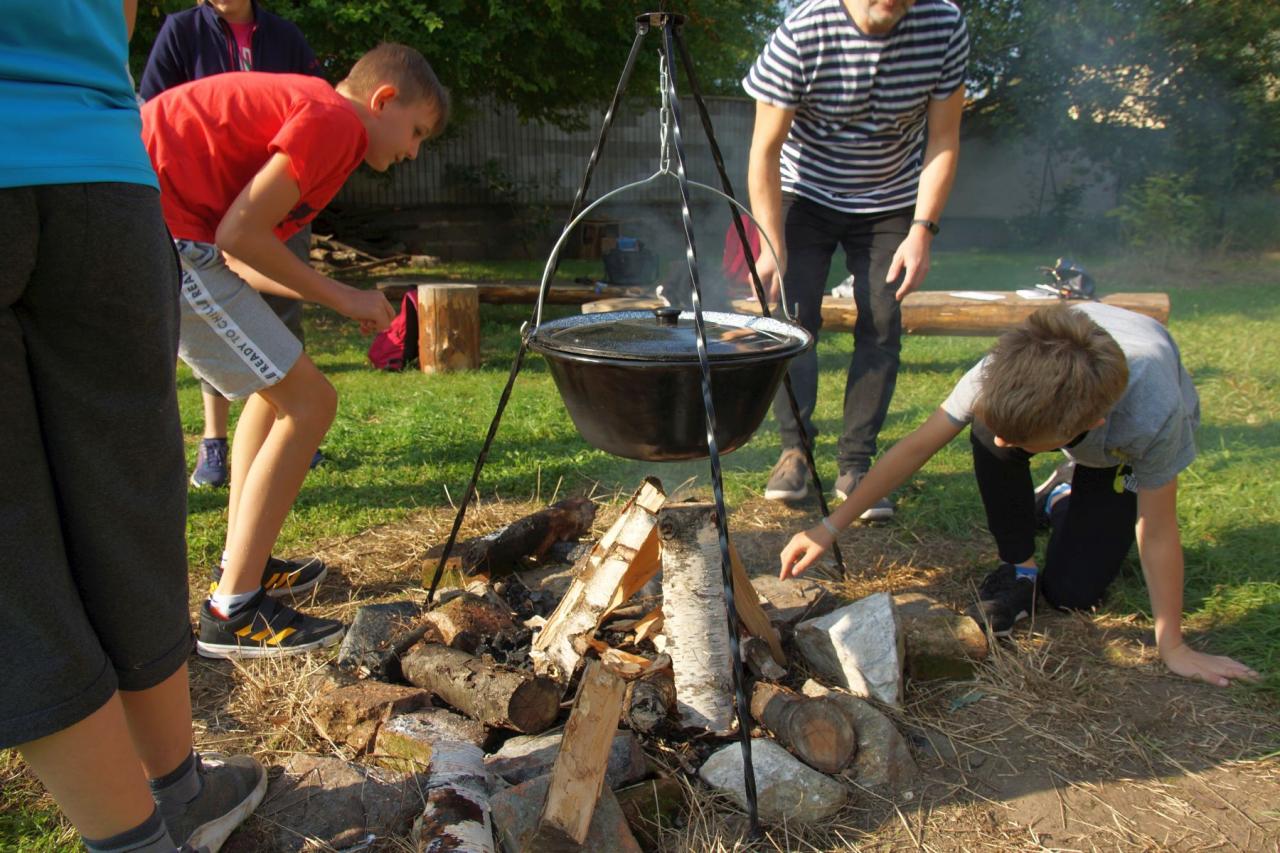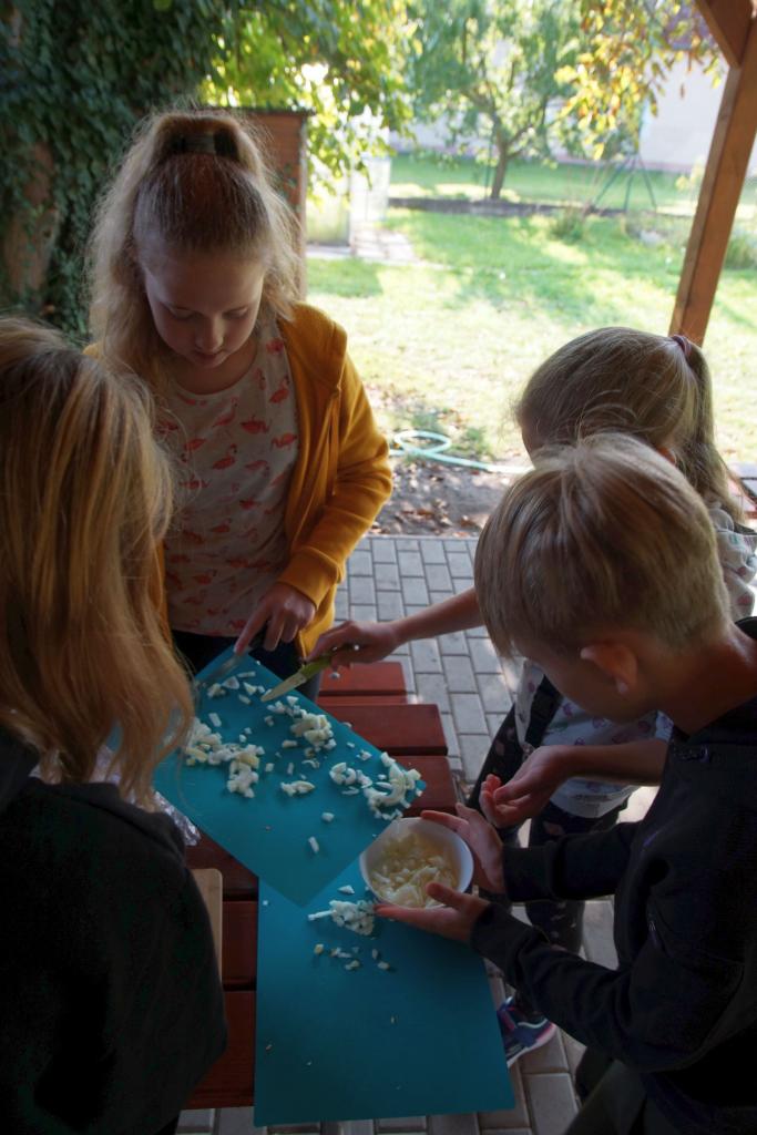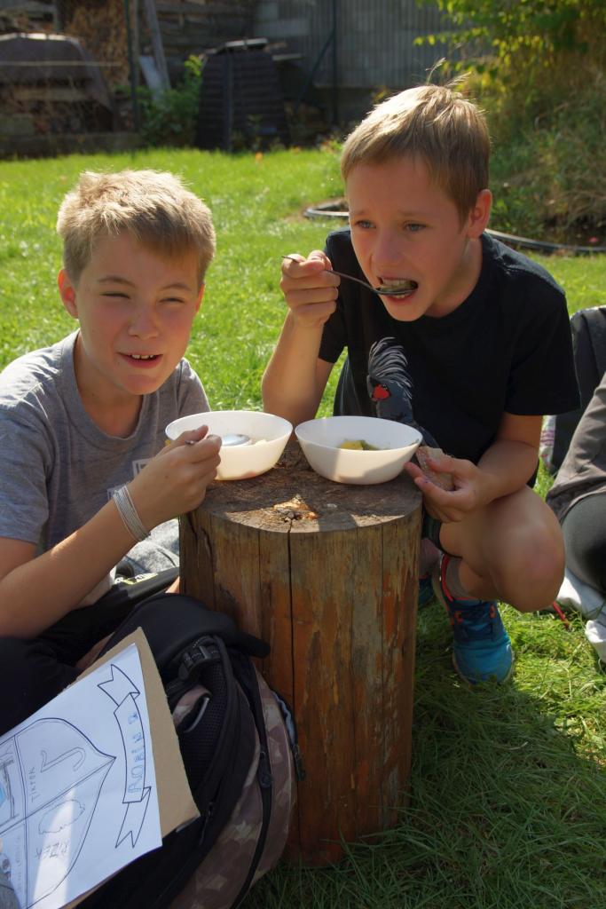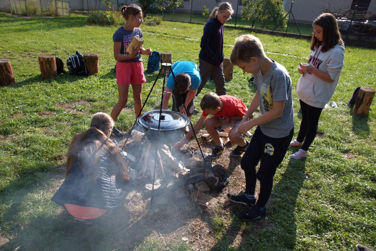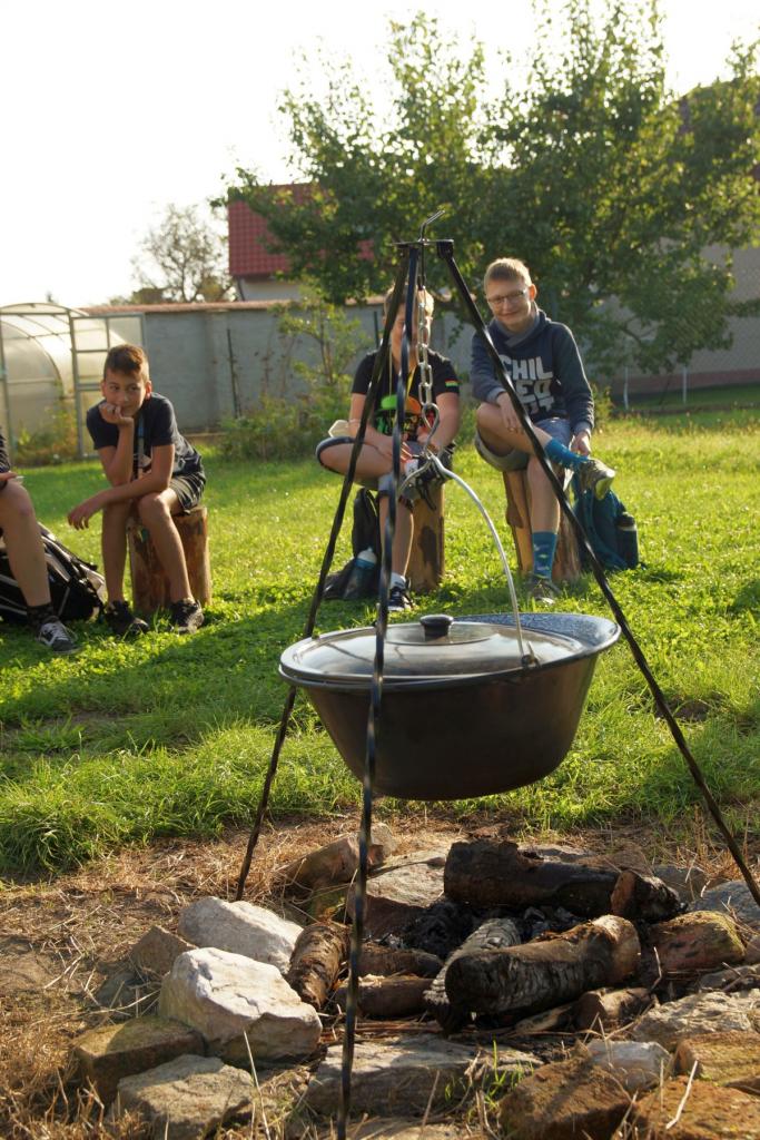 Na školní zahradě jsme hráli hry, povídali si.....a taky jsme vařili bramborovou polévku, a to všechno proto, abychom se jako kolektiv co nejrychleji dali dohromady. A polévka byla báječná!