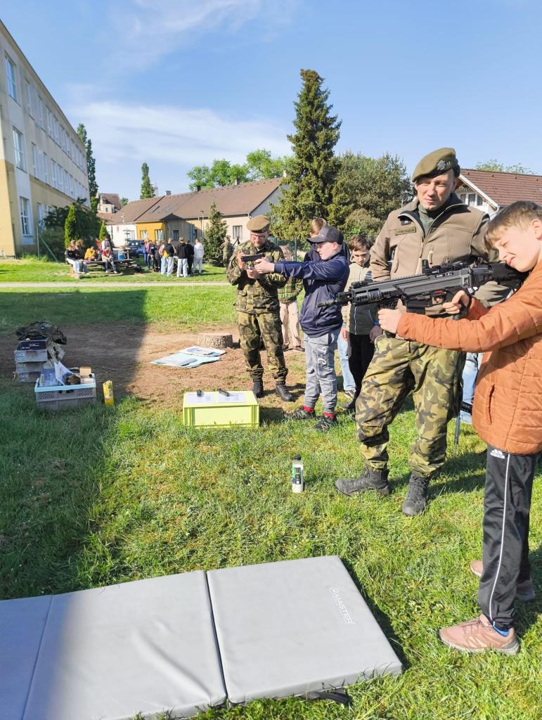 7.5. Jsme kus vyučování strávili s úplně jinou sestavou. Dnes nás provázeli opravdovští vojáci, kteří přijeli v rámci POKOS. Co to znamená po dnešku určitě každý šesťák dovysvětlí. Excelovali jsme na 4 stanovištích. A dokonce dosáhli i rekordu v počtu jedniců, kteří se vtěsnali do kufru vojenského automobilu. Poznáte, které fotky se k tomu vážou?