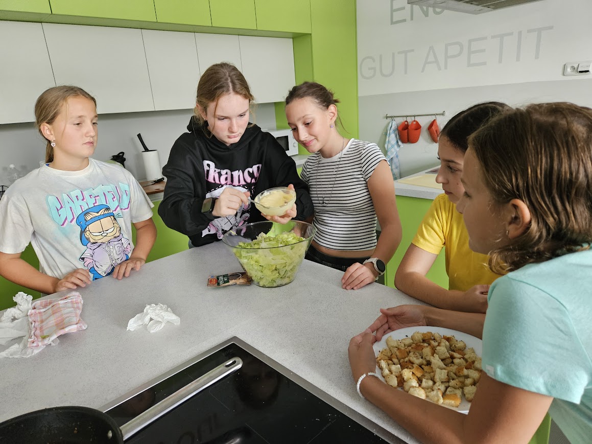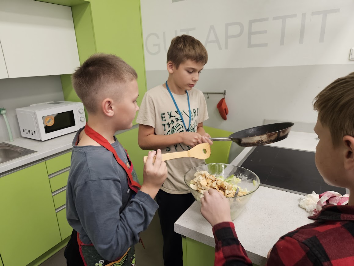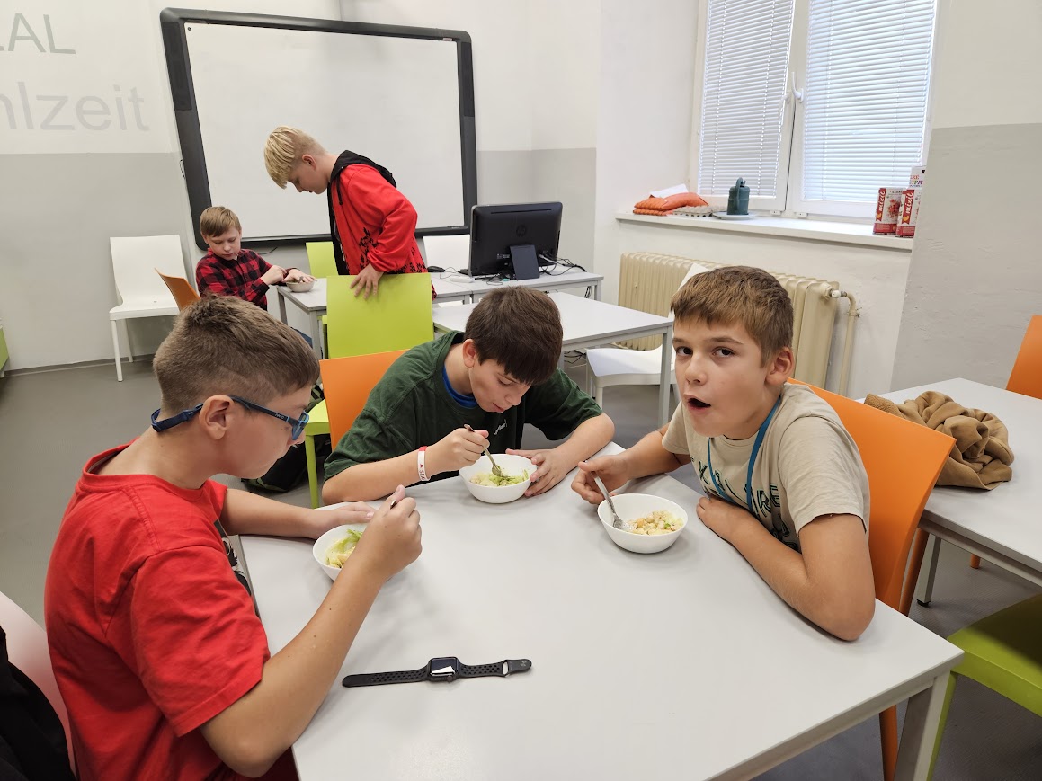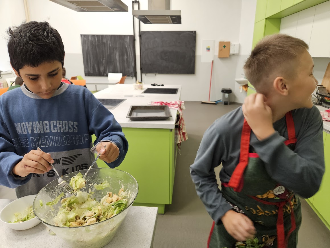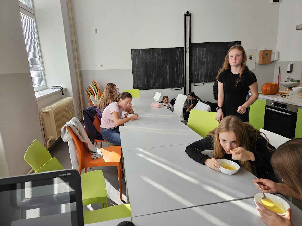 Každý druhý týden máme v rámci světa práce vaření - zatím jsme vyráběli saláty: okurkový, mrkvovo-jablkový a salát Caesar - ten se nám obzvlášť povedl. Během poslední hodiny jsme vydlabávali dýně a z vydlabaných kousků jsme uvařili dýňovou polévku. Ta nepatří k nejoblíbenějším jídlům všech strávníků, ale většina dětí ji alespoň ochutnala. Některým ale polévka moc chutnala.