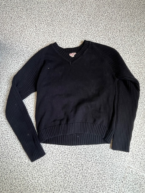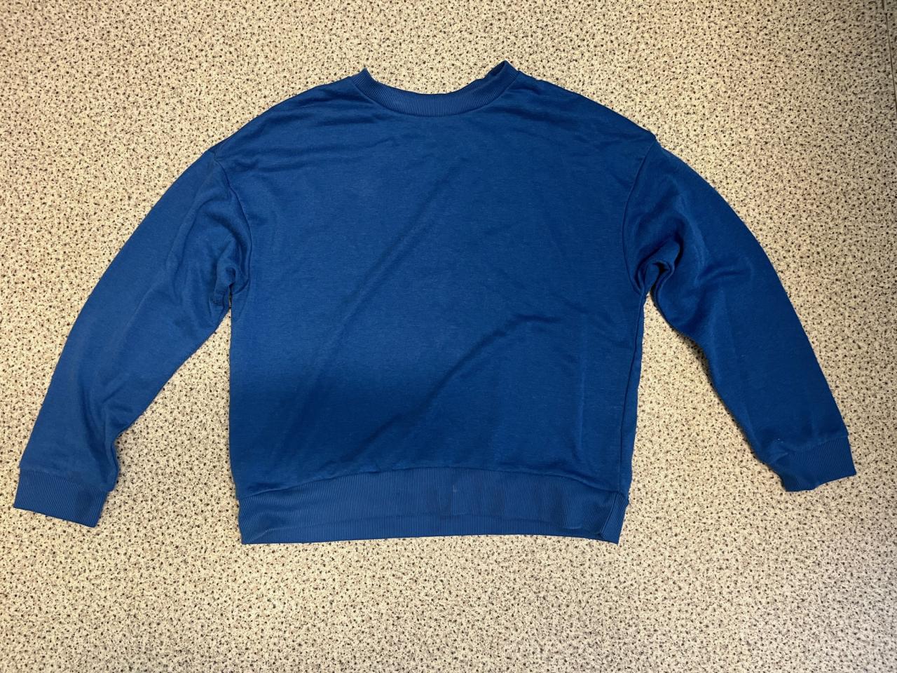265Tmavě modrý slabý proínmací svetr KIABI se zlatými knoflíky