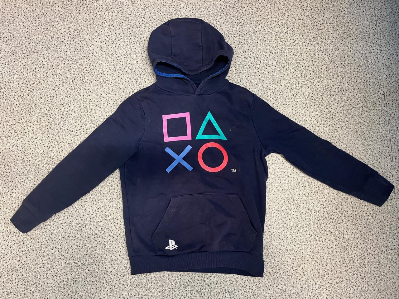 204 Temně modrá mikina kapucí a barevnými znaky PlayStation
