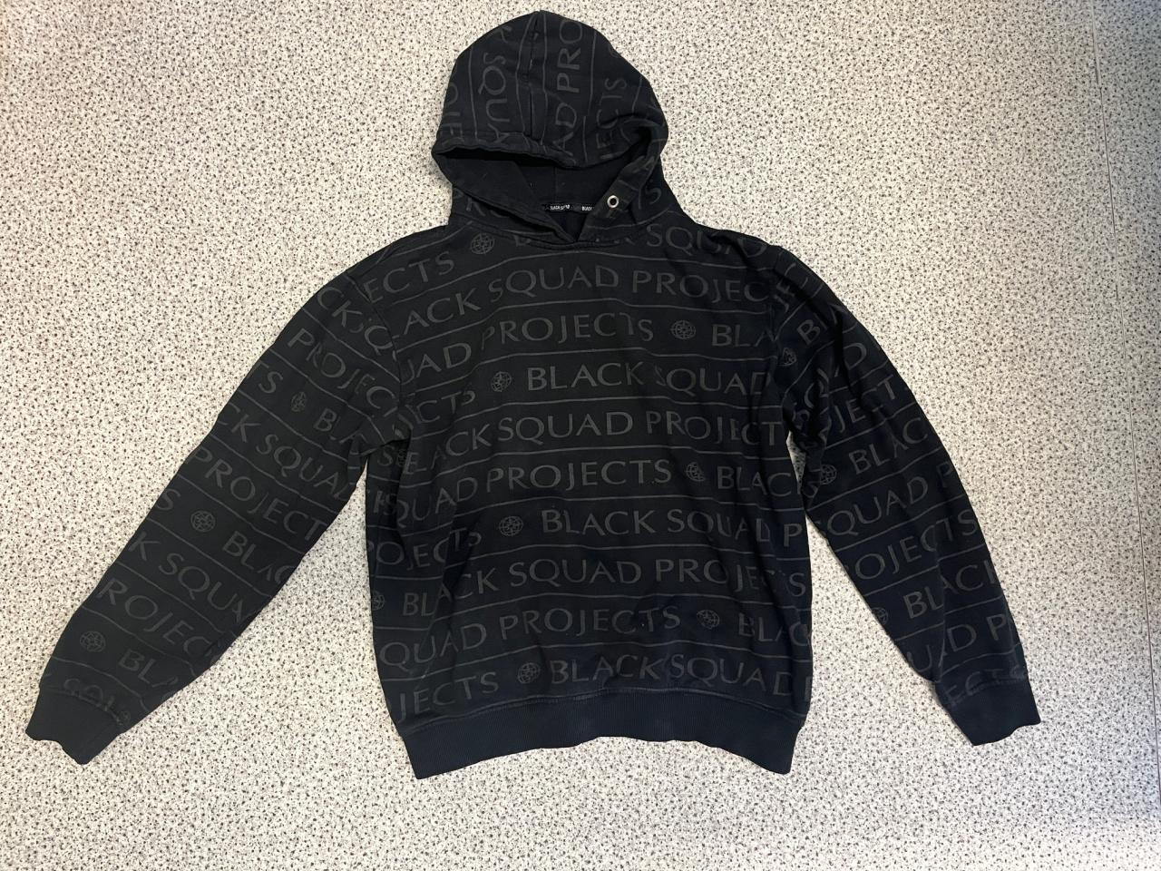 210 Černá mikina s kapucí s potiskem tenisek a skateboardu