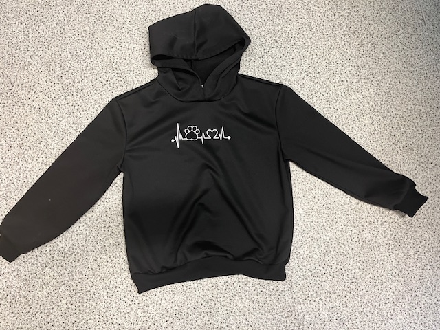 206 Černá mikina s kapucí potiskem srdečního rytmu a psí tlapkou