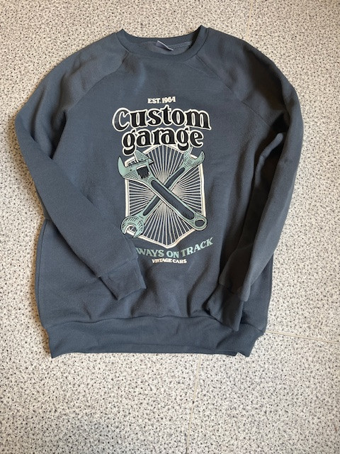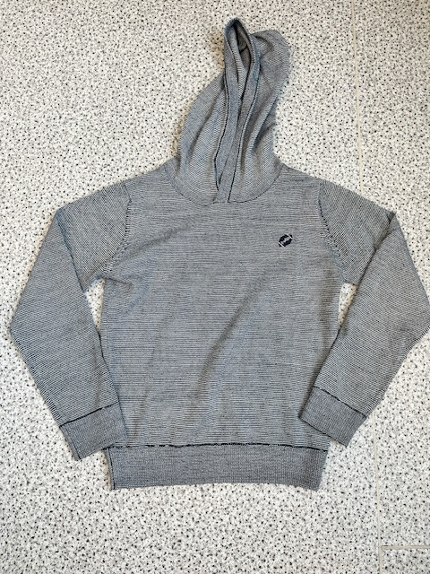 221 Pruhovaná tmavě modrá slabá mikina s potiskem hlavy soba