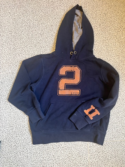 272Tmavě modrá mikina s kapucí a oranžovou číslicí 2