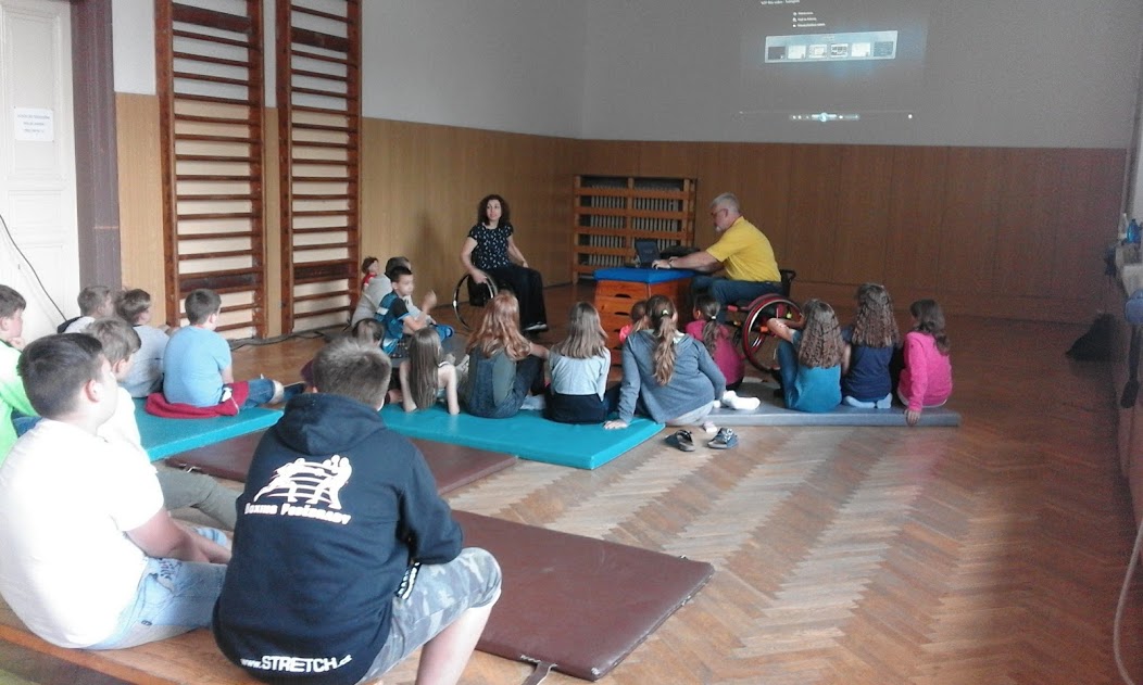 Ve středu 9. 5. 2018 proběhlo ve všech pátých třídách setkání s můžem a ženou na invalidním vozíku.
